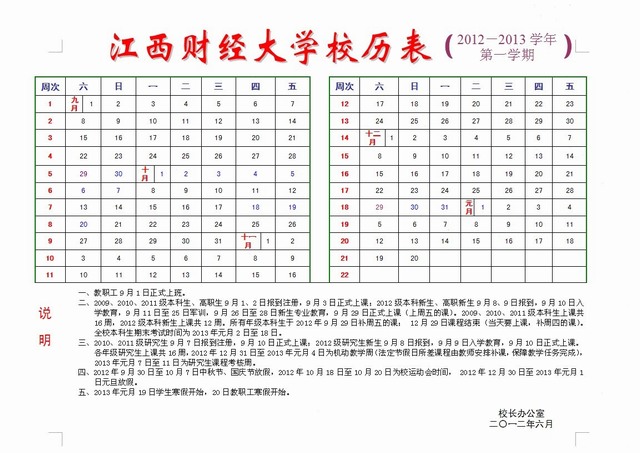 12―13学年第一学期校历表