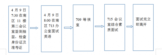 二、复试时间地点安排 项目 | 时间 | 地点 | 所需材料 | 备注 | 体检 | 2023年4月6日至4月9日 上午8:00-11:30 下午14:00-16:30 | 校医院 | 体检表 身份证 | 详见2023年研究生复试体检通知 | 资格审查 | 4月7日 14:30-16:30 | 南区综合楼0715会议室 | 提交资格审查材料 | 详见资格审查材料 | 考生查看考场 | 4月7日 17:00 | 北区五教楼 5501、5503 | 5501马原23、马中化8人 | 5503马中化8、思政 20人,党建4人 | 专业课笔试 | 4月8日 9:00-12:00 | 北区五教楼 5501、5503 | 准考证 身份证 | 考生8:35入场,迟到15分钟禁止入场,不能提前30分钟交卷。 | 同等学历加试 | 4月8日 14:00-18:00 | 南区综合楼703办公室 | 准考证 身份证 | | 综合素质面试 英语听力、口试 | 4月9日 8:00 | 南区0715会议室 南区713办公室 | 准考证 身份证 | 考生7:30到达南区综合楼11楼第二会议室抽签签到 | 结果公布 | 复试结束 后12小时内 | 群公布 | | |