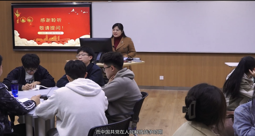 庄秋菊老师在《中国近现代史纲要》课程教学中探索实践了将问题式专题化团队教学改革与“师生同台”授课模式有机融合,引导学生主动参与课堂教学全过程。在专题九凤凰涅槃:为建立新中国而奋斗中,庄老师和学生林珍、张媛、朱瑜、曹煜以问题链中的第二个问题“中国共产党为什么能够赢得解放战争的胜利?”为主题为全院思政课教师们呈现了一堂“师生同台”示范课。