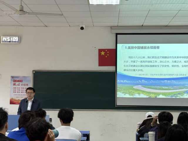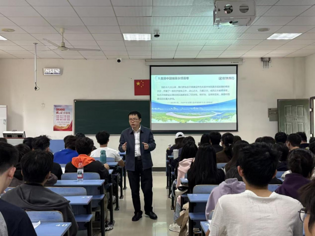 课内容主要围绕“‘十四五’时期经济社会发展的重大成就”“‘十四五’时期发展的经验启示”和“立足复杂形势科学谋划‘十五五’”三方面内容展开。在“‘十四五’时期经济社会发展的重大成就”方面,谢花林教授指出,“十四五”时期,我国在经济、政治、文化、社会和生态文明建设各领域都取得长足进步和快速发展。他特别强调,党的十八大以来,我们以壮士断腕的决心推进生态文明建设,污染防治攻坚战取得重大战果,经济社会发展全面绿色转型,为高质量发展注入强大绿色动力,也为全球可持续发展贡献了中国智慧与力量。