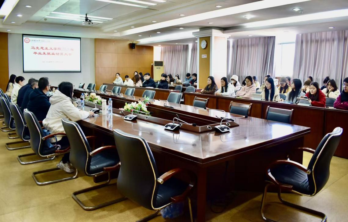 为帮助毕业生准确把握就业形势,明确职业目标,提升就业竞争力,11月18日下午,马克思主义学院在蛟桥园南区综合楼11楼第三会议室召开2026届毕业生就业动员大会。学院院长刘晓泉、院党委书记肖建文、副院长刘晓根、院党委副书记王慧芳、团委书记阙刘汇敏以及2026届全体毕业生参加了本次会议。会议由阙刘汇敏主持。