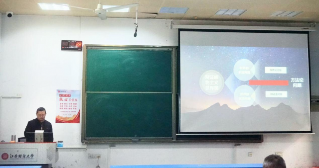 “原理”课教研室由左乐平老师主讲,他以“辩证唯物主义世界观”为主题,聚焦“世界的物质统一性、联系与发展规律、主客观规律辩证统一”,以严谨思辨清晰地阐述唯物论与辩证法的核心要义及逻辑,将抽象范畴与现实结合,构建扎实且贴近现实的理论框架,实现原理讲授与思维训练融合,做到了学以致用。