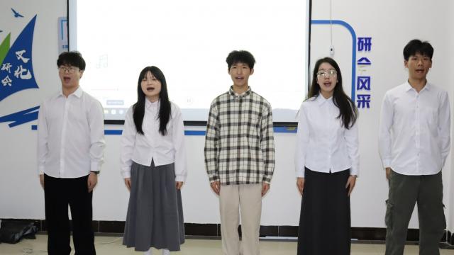 随后的歌曲演唱环节,同学们用歌声唱响青春心曲。《我怀念的》《句号》《Always Online》三首风格各异的独唱,或深情款款,或坚定洒脱,或轻快灵动,充分展现了演唱者扎实的唱功与个性化的情感表达。双人合唱《雨爱》《我们的歌》《永不失联的爱》则默契十足,和声优美,将同伴间的合作与情感的共鸣演绎得淋漓尽致,赢得了阵阵掌声。 本次大赛的亮点之一,是由同学们自编自导自演的情景剧《甄嬛传-滴血认亲(反内卷版)》。该剧巧妙借用经典桥段,以诙谐幽默的台词和夸张生动的表演,对当下学生群体中存在的“内卷”现象进行了善意而深刻的反思与解构,倡导积极健康、张弛有度的学习生活态度。演出笑点频出,现场反响热烈,在欢声笑语中引发了同学们的广泛共鸣与思考。