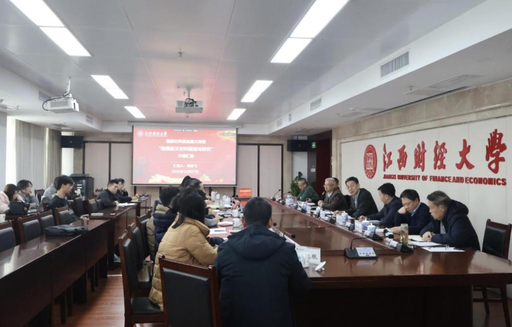 12月27日上午,国家社科基金重大委托项目“南昌起义史料整理与研究”开题报告会在蛟桥园北区图文楼13楼第二会议室举行。江西财经大学党委书记刘耀彬、中共江西省委宣传部理论处处长陈燕清、江西省社科规划办主任吴峰出席,中国人民大学中共党史党建学院院长杨凤城教授、广西大学党委副书记汤志华教授、南昌大学党委常委、副校长陈始发教授、军事科学院军队政治工作研究院研究员王建强、江西科技师范大学建军精神研究院常务副院长叶桉教授莅临现场,教育部原社科中心主任、北京师范大学中共党史党建研究院院长王炳林教授、华南师范大学马克思主义学院原院长陈金龙教授线上指导,项目首席专家龚剑飞教授,中共江西省委党史研究室副主任刘津等子课题负责人和课题组成员参加,会议由马克思主义学院院长刘晓泉教授主持。