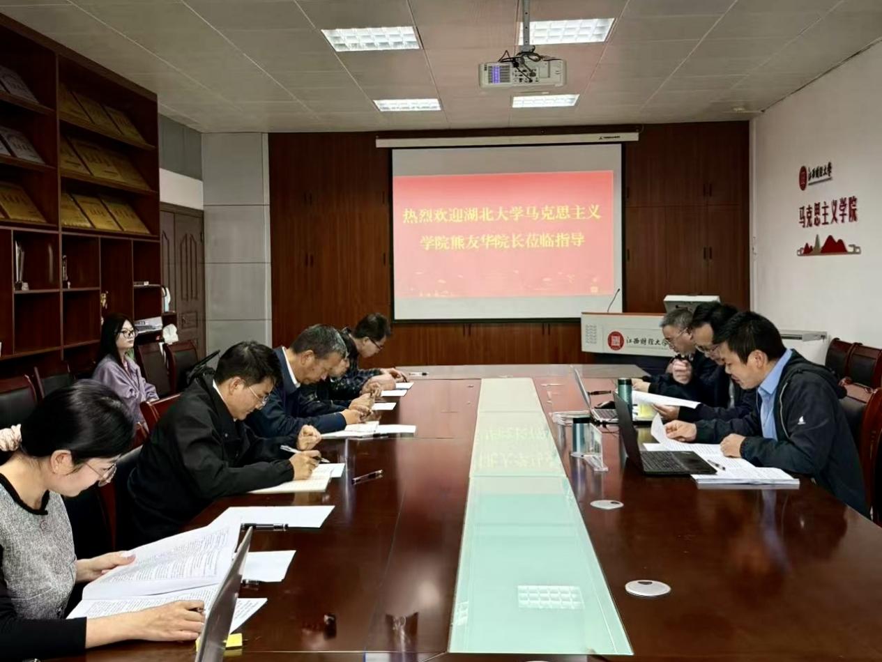 4月11日下午,马克思主义学院在南区综合楼715会议室召开科研课题申报指导座谈会,湖北大学马克思主义学院院长熊友华莅临指导,学院院长刘晓泉、副院长刘晓根、李德满出席,准备课题申报的部分教师参加了会议,会议由李德满主持。